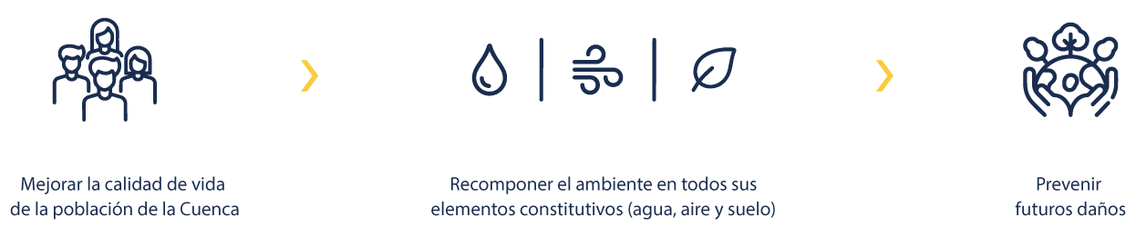 Fue elaborado entre 2009 y 2010 y actualizado en 2016, resultado del trabajo de especialistas y del consenso entre las jurisdicciones afectadas. Está organizado por 14 líneas de acción con proyectos específicos y tres objetivos centrales: mejorar la calidad de vida de la población de la Cuenca, recomponer el ambiente en todos sus elementos constitutivos (agua, aire y suelo) y prevenir futuros daños.