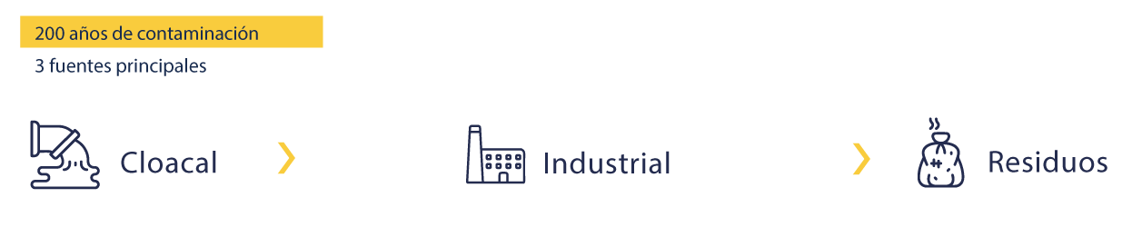 Luego de más de 200 años de contaminación ACUMAR logró definir los motivos y comenzó a trabajar para atacar directamente las cuasas de la dregradación, que son fundamentalente tres.